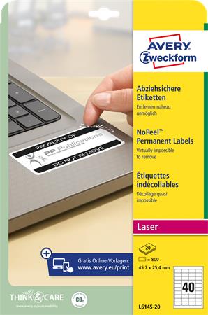 Etikett, eltávolíthatatlan, 45,7x25,4 mm, AVERY ZWECKFORM, 800 etikett/csomag